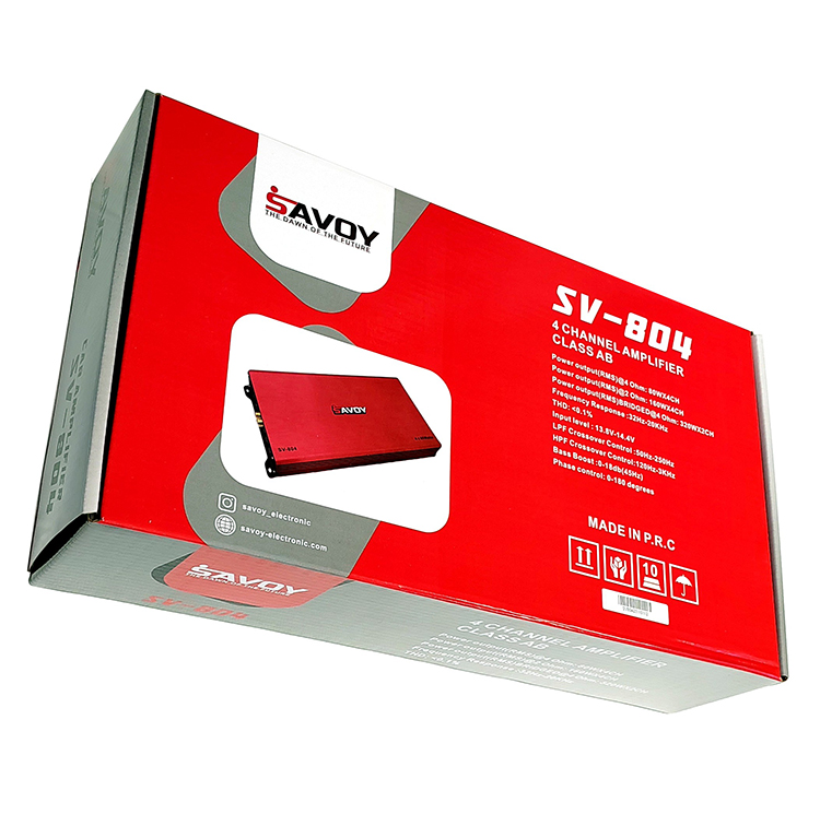 آمپلی فایر ساووی SV-804 با حداکثر توان خروجی 3600طراحی شده تا بتواند به خوبی نیاز سیستمهای صوتی حرفهای و قدرتمند خودرو را تأمین کند. این دستگاه با خروجی RMS (قدرت مداوم) 4×80 وات در 4 اهم، امکان راهاندازی و تقویت صدای 4 بلندگو یا 2 سابووفر را فراهم میکند. طراحی فشرده و جمعوجور این آمپلی فایر، به شما اجازه میدهد که آن را به راحتی در هر قسمت از خودرو نصب کنید.