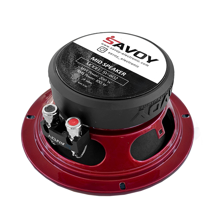 میدرنج 4 اینچ ساووی SV-602، میدرنجی با کیفیت صدای بسیار خوب و حجم صدای بسیار بالا می باشد که در صورت نصب کنار یک جفت سوپرتیوتر و ساب ووف قدرتمند یک صدای ایده آل به کاربر می دهد. SV-602 با 200W حداکثر توان خروجی قدرت بالای را به نسبت تولید میکند ، توان اسمی این محصول 100 RMS میباشد و برای راه اندازی به آمپلی فایرهای قدرتمند و با کیفیت احتیاج دارد. 93 دسیبیلی و مقاومت ۴ اهمی این میدرنج کیفیت صدای سیستم صوتی شما را چندین برابر می کند.