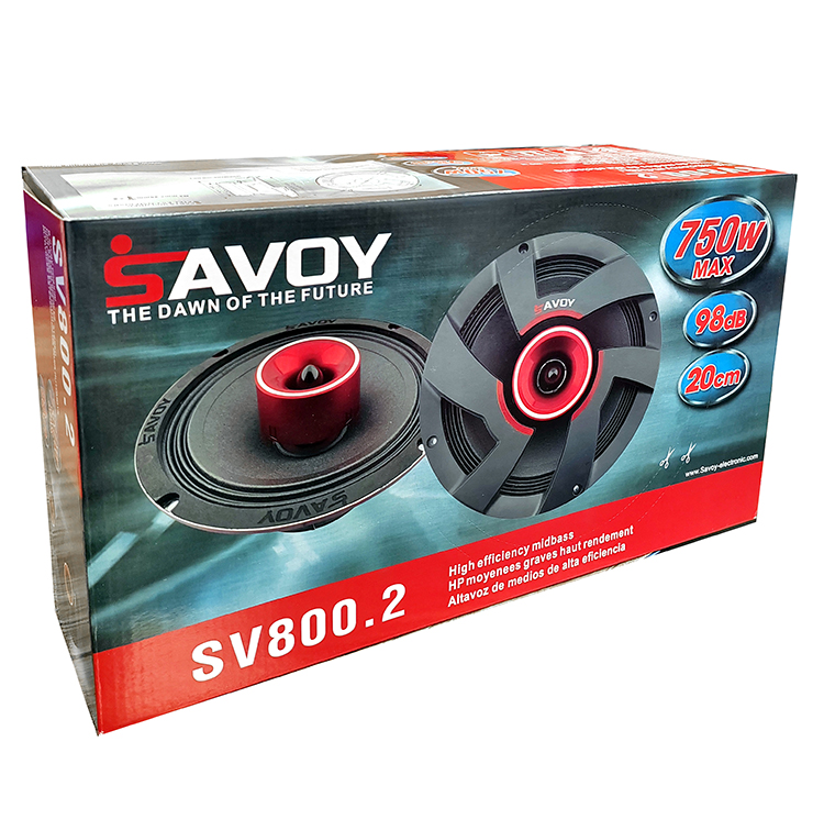 این فول رنجSAVOY در سایز 8 اینچ ساخته شده و دارای بیشینه صدای خروجی 750واتی بوده و توان اسمی 200وات RMS دارد.